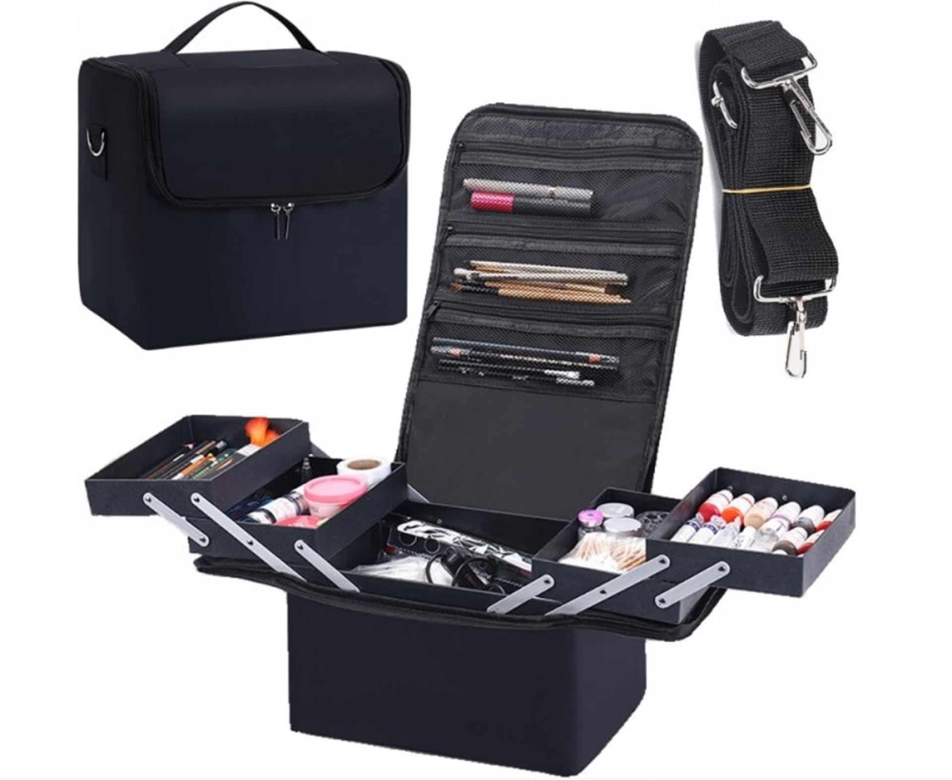 Czarna Kosmetyczka Rozkładana Elegancki Kuferek Organizer Na Kosmetyki Przenośna Cb45 Siedliszcze