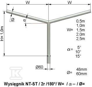 Wysięgnik NT ST 2 ram 1,5 m o numerze katalogowym 3.01.003.99100.21609 w kategorii Wysięgniki na słupy, Słupy oświetleniowe. Produkt wyprodukowany przez markę ELEKTROMONTAŻ, seria NT. WYSIĘGNIK o wymiarach 1 x 0.06 x 1.5 m. Waga produktu wynosi 18.18 kg.