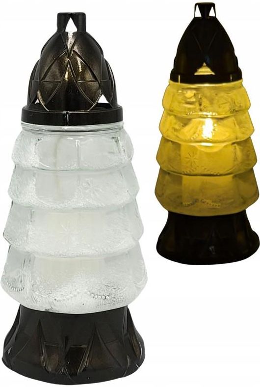 Znicz Choinka Biała Lampion Świąteczny Boże Narodzenie Szklane z Wkładem Lampiony Świąteczne w kształcie choinki w białym kolorze + wkład parafinowy Świąteczny wygląd choinki w białym kolorze z białymi brzegami oraz złotymi detalami. Znicz wyróżniający się świątecznym klimatem Bożego Narodzenia Cechy produktu: Wysokość całego lampionu to 18,5 cm Podstawa i daszek w kolorze złotym Kolor: Biały Dodatki w kolorze białym Materiał: Szkło + Plastik Lampion przystosowany do użytku wkładów: parafinowych olejowych na baterie solarnych Zalecamy używanie wkładów KAGANEK dla utrzymania znicza w najlepszej kondycji. Proponowany przez nas rozmiar do tego znicza to "KAGANEK K2" - wkład 2-dniowy. Dodatkowe cechy: Trwałość: Odporny na warunki atmosferyczne (deszcz, śnieg) Czas palenia: Znicz ma 18,5 cm wysokości możesz dobrać wkłady o 2 dniowym czasie palenia Estetyka i wzornictwo: Świąteczny model, białe dodatki Kolor: Złota czapeczka i dół Stabilność: Szeroka, stabilna podstawa zapobiega przypadkowemu wylaniu się wkładu Obsługa: Możesz szybko wymienić wkład bez brudzenia rąk Dlaczego warto wybrać ten znicz? Jest to idealny wybór dla Ciebie, jeśli lubisz świąteczne wzory Znicz w kształcie choinki w kolorze białym Odpowiedni na okres Bożego Narodzenia