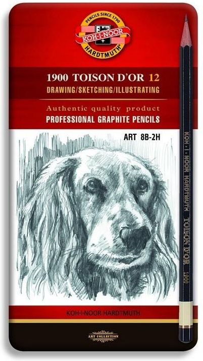 Opis produktu Zestaw 12 ołówków 1900 Toison od 8B do 2H w metalowej kasetce Zestaw 12 ołówków 1900 od 8B do 2H Ołówki grafitowe KOH-I-NOOR serii 1900, charakteryzują się wysoką czystością grafitu z którego zostały wykonane. Oprawki wykonane z drewna cedrowego wielokrotnie lakierowane. Dostępne są w skali gradacji od 10H do 8B. Dzięki tak szerokiej skali gradacji są bardzo wszechstronne i znajdują zastosowanie w grafice, rysunku technicznym, plastyce, oraz szkole, biurze i codziennym użyciu. Na zestaw artystyczny składa się 12 ołówków stworzony z myślą o najbardziej wymagających użytkownikach. Znajdziemy w nim ołówki o miękkiej gradacji 8B -2H, umieszczonych w metalowym pudełku. Doskonale sprawdzą się w pracy grafików, do szkicowania, cieniowania czy rysowania konturów. Świetnie nadają się również dla artystów, w warunkach szkolnych i domowych, na zajęcia z rysunku. Ołówki pokryte są czarnym, matowym lakierem. Wyglądają bardzo elegancko. wysokiej jakości ołowki czarna oprawa grafitu producent Kooh-I-Noor eleganckie metalowe opakowanie idealnie nadaje się na prezent 8B-7B-6B-5B-4B-3B-2B-B-HB-F-H-2H w opakowaniu 12 ołówków
