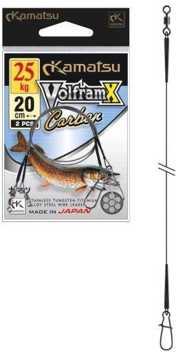 Kamatsu przypon Volframx Carbon 20 cm 5 kg 2szt Przypony wykonane z włókien stalowych w grafitowej otulinie, wyposażone w doskonałej jakości krętliki i agrafki. Całkowicie odporne na przecięcie i nie skręcające się na skutek przeciążeń wywołanych holem lub uwalnianiem przynęty z zaczepu. Wyjątkowo staranny splot, 100% odporności na działanie wody oraz długości 5 m, 20 i 30 cm i gwarantowanej wytrzymałości 5, 10, 15 i 25 kg powodują, że miłośnicy połowu szczupaków powinni... Co tu dużo mówić przetestujcie, a na pewno docenicie ich jakość. ilość: 2 sztuki długość: 20 cm wytrzymałość: 5 kg