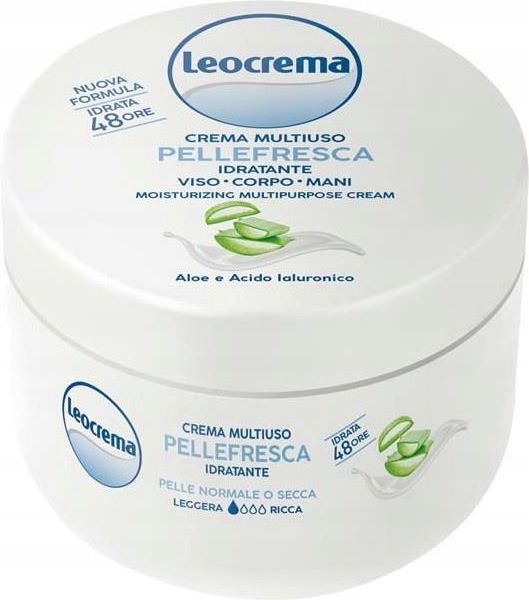 Leocrema Krem do ciała Aloe Vera 300 ml Leocrema Poczuj wyjątkowe działanie Leocrema Krem do ciała Aloe Vera, który został stworzony z myślą o kompleksowej pielęgnacji skóry. To znakomite rozwiązanie w codziennej trosce o nawilżenie i rewitalizację. Krem wzbogacony został w naturalny ekstrakt z Aloesu, znany z łagodzących i kojących właściwości. Dzięki temu produkt ten idealnie sprawdzi się w przypadku wszystkich typów skóry, w szczególności skóry wrażliwej i suchej. Innowacyjna formuła Leocrema Krem do ciała Aloe Vera wnika głęboko w strukturę skóry, zapewniając intensywną dawkę nawilżenia i odżywienia. Dzięki lekkiej konsystencji, krem aplikuje się łatwo i szybko się wchłania, pozostawiając skórę miękką, gładką oraz pełną blasku przez cały dzień. Regularne stosowanie tego produktu pozwala na utrzymanie naturalnej bariery ochronnej skóry, co chroni ją przed szkodliwym działaniem czynników zewnętrznych. Wyjątkowe działanie tego profesjonalnie opracowanego kremu oferuje szereg korzyści: Głębokie nawilżenie przenikające w głąb skóry dla długotrwałego efektu. Łagodzące właściwości aloesu redukujące podrażnienia i zaczerwienienia. Nietłusta formuła szybko się wchłaniająca i dająca gładkie wykończenie. Odpowiedni dla wszystkich rodzajów skóry, także wrażliwej i suchej. Promuje zdrowy i młodzieńczy blask przy regularnym stosowaniu.