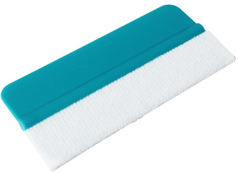 Rakla z filcem 10 cm Rakla o wymiarach 10 x 4,5 cm. Wykończona miękkim filcem w kolorze białym. Wykonana z elastycznego tworzywa, które dodatkowo zwiększa komfort użytkowania zwłaszcza podczas aplikacji folii na nierównych powierzchniach. Rakla idealnie sprawdzi się podczas aplikacji różnego rodzaju folii. Skutecznie usuwa pęcherzyki powietrza i poprawia przyleganie foli do przyklejanej powierzchni. Zastosowanie miękkiego filcu chroni folię przed zarysowaniami. Zastosowanie: obklejanie samochodu przyciemnianie lamp przyciemnianie szyb aplikacja folii na ekranie smartfona