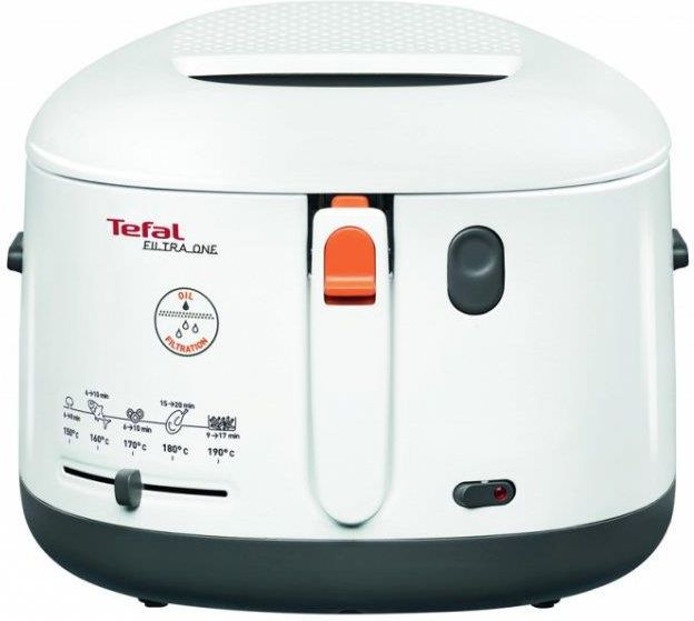 Tefal FF 1631 Frytkownica Filtra One marki Tefal pozwoli Ci przygotować aż do 1,2 kg doskonale chrupkich domowych frytek! Urządzenie posiada unikalną i opatentowaną technologię filtracji oleju. Po smażeniu możesz łatwo usunąć przypalone resztki jedzenia jednym ruchem! Filtra One - Łatwe smażenie dzięki funkcji filtracji oleju. Z urządzeniem Tefal Filtra One przygotujesz do 1,2 kg doskonale chrupkich domowych frytek! Tę frytkownicę do smażenia na głębokim tłuszczu wyposażono w opatentowaną technologię filtracji oleju, dzięki czemu smażenie jest zdrowsze. Po każdym użyciu możesz łatwo usunąć wszystkie pozostałe w oleju resztki jedzenia. Ty i Twoja rodzina pokochacie wygodę i bezpieczeństwo przygotowywania posiłków z urządzeniem Filtra One! Dzięki specjalnej izolacji termicznej ścianki frytkownicy nie nagrzewają się podczas smażenia. Składane uchwyty ułatwiają przechowywanie urządzenia, a termostat umożliwiający ustawienie temperatury w zakresie od 150 do 190 °C sprawia, że efekty smażenia są zawsze dostosowane do Twoich potrzeb. Okienko w pokrywie zapewnia pełną kontrolę procesu smażenia. Pokrywę i koszyk możesz myć w zmywarce, dzięki czemu utrzymanie urządzenia w czystości nie stanowi problemu.