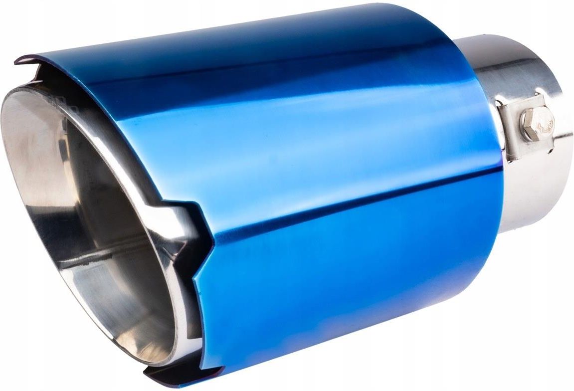 Końcówka tłumika wydechu stal nierdzewna NIEBIESKA Końcówka uniwersalna nadająca elegancki sportowy wygląd. Poprzez szeroki zakres regulacji uchwytów pasuje do większości samochodów (dwa sposoby montażu: do przykręcenia za pomocą śrub montażowych lub do przyspawania). Końcówka wydechu przeznaczona jest to montażu jako dodatkowy element auta nadając mu rasowy wygląd i charakter. Końcówka posiada zacisk mocujący umożliwiający montaż bez potrzeby spawania. Układ wydechowy stanowi ważną część samochodu, dlatego tłumiki w każdym pojeździe powinny działać sprawnie. Obok kolektorów i rur wydechowych pełnią jedną z kluczowych funkcji zapewniających komfort jazdy. WYMIARY Średnica montażowa: 43mm-56mm Średnica na początku: 89mm Średnica na końcu: 57mm Długość 162mm / 135mm (góra/dół)