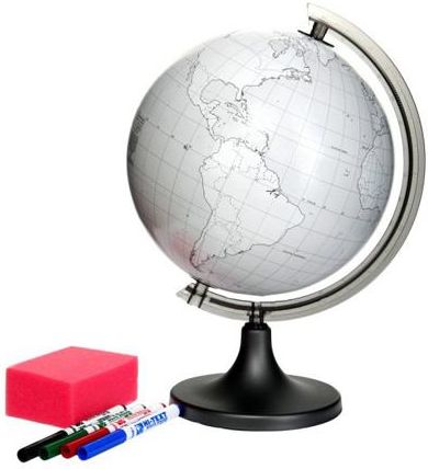 Globus konturowy bez podświetlenia 25 cm - doskonałe narzędzie dydaktyczne Globus konturowy o średnicy 25 cm to świetna pomoc dydaktyczna, która umożliwia nauczycielom wprowadzenie nowych zagadnień oraz utrwalenie i sprawdzenie nabytych umiejętności uczniów z zakresu geografii. Posiada on białą tarczę z wyraźnym konturem, na której zaznaczone są elementy takie jak siatka geograficzna, kontynenty oraz granice państw. Brak napisów i możliwość pisania na globusie Wersja globusa bez podświetlenia charakteryzuje się brakiem napisów, co sprawia, że uczniowie muszą zapamiętać i stosować umiejętności, które nabyli podczas zajęć lekcyjnych. Dodatkowo, globus pozwala na rozwiązanie interaktywne polegające na pisaniu po nim przez uczniów za pomocą ścieralnego flamastera. Pozwala im to na samodzielną pracę, a nauczycielom na kontrolowanie postępów uczniów.Wykorzystanie globusa konturowego opisanego w tej ofercie gwarantuje, że uczniowie będą efektywnie uczestniczyć w lekcjach geografii oraz aktywnie rozwijać swoje umiejętności i wiedzę na temat różnych obszarów i kontynentów na naszym świecie. Zestaw kompletny Globus konturowy oferowany jest z zestawem niezbędnym do pracowania z uczniami - również znajdują się w nim gąbka i ścieralne flamastry, dzięki którym uczniowie w łatwy sposób będą mogli przetestować swoją wiedzę.Wykorzystanie tego globusa konturowego to skuteczny sposób na zwiększenie poziomu zaangażowania uczniów oraz interaktywnego wprowadzania nowych materiałów na zajęciach geografii. EAN: 5906727901321