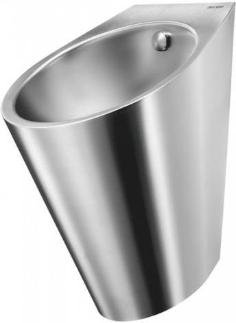 indywidualny pisuar wiszący bez kołnierza kompatybilny ze standardowymi stelażami dostępnymi na rynku inox 304 bakteriostatyczny. Wykończenie satynowe grubość Inoxu: 1,2 mm zasilanie wody z tyłu (podtynkowe) poziomy, podtynkowy odpływ wody lub natynkowy. Niewidoczny syfon prosta i szybka instalacja: montaż od przodu dzięki płycie montażowej z Inoxu dostarczany z syfonem 1½″. Dostarczany z mocowaniami znak CE. Produkt zgodny z normą PN-EN 13407 do spłukiwania 2 l wody kolor: inox satynowy