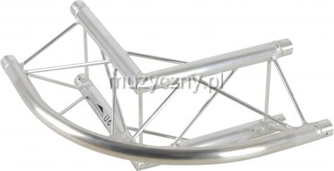 DuraTruss DT 23/2-C24R-L90 - 2 way rounded corner 90° The DT23 series is a 3-point-trussing-system with conical coupler (spigot), trusspin and safety clip. This quick connector system closes force-lockingly with the belt tube and allows rapid construction during frequent assembly and dismantling. The three main tubes are made of 35mm aluminum tube with a wall thickness of 2mm and give this system an outstanding strength-to-weight ratio. The struts have a diameter of 8 mm. Each truss piece includes all necessary conical connectors, steel pins and safety clips. The DT 23/2 system can be extended with various lengths, corners, T-branches and angles. Extensive accessories such as hooks, connectors, base plates and much more solutions complete the product line.The system is from European production which is compatible to the most common systems in the marketTechnical specs:- Diametrics main tube: 35 mm (1.4 inch) - Wall thickness: 2 mm (0,08 inch)- Diametrics braces: 8 mm (0.3 inch)- Material: Aluminium EN-AW 6060 T66 (AlMgSi1) - Included in delivery: 3 cones, 6 steel pins, 6 safety clips- Length: 500 mm (without cone)- Width: 500 mm - Height: 220 mm- Angle: 90°- Weight: 1,9 kg