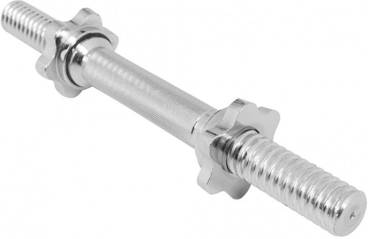 Gryf do hantli 42 cm gwintowany GORILLA SPORT długość: 42 cm waga: 3 kg średnica: 30 mm maks. obciążenie: 100 kg materiał: chrom pełny pręt śrubowy długość części na ciężary: 14 cm z każdej strony wykończenie części chwytnej: ryflowane Najwyższa jakość wykonania Gryf marki Gorilla Sports to produkt najwyższej jakości dzięki zastosowaniu najlepszej stali chromowanej. W przeciwieństwie do wielu produktów konkurencji gryfy Gorilla wyróżniają się pełnym wypełnieniem w środku (wielu producentów zamiast jednolitego prętu oferuje rurę, która może się złamać przy większym obciążeniu). Wszystkie produkty marki Gorilla Sports charakteryzują się niemiecką precyzją i najwyższą jakością. Wygoda używania Dzięki zastosowaniu ryflowania na części chwytnej nie musisz obawiać się, że gryf wyślizgnie się z rąk w trakcie ćwiczeń. Szeroka część chwytna sprawia, że jest dopasowany do różnych szerokości ramion. Bezpieczne ćwiczenia W zestawie z gryfem znajdują się 2 zakrętki gwiazdkowe do mocowania ciężarków, które zapewniają bezpieczeństwo w trakcie treningu. Nowoczesny design Gryf Gorilla został zaprojektowany przez niemieckich specjalistów. Wykonany z lustrzanej, chromowanej stali będzie ozdobą Twojej domowej siłowni.