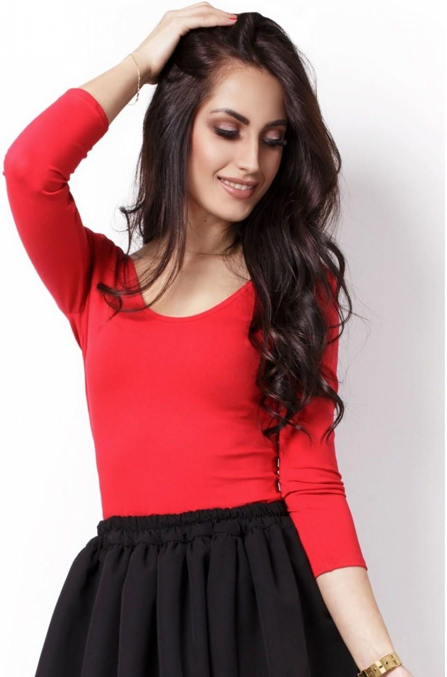 Ivon Czerwona basicowa bluzka z dekoltem i rękawem IZABELLE Siemianowice Śląskie