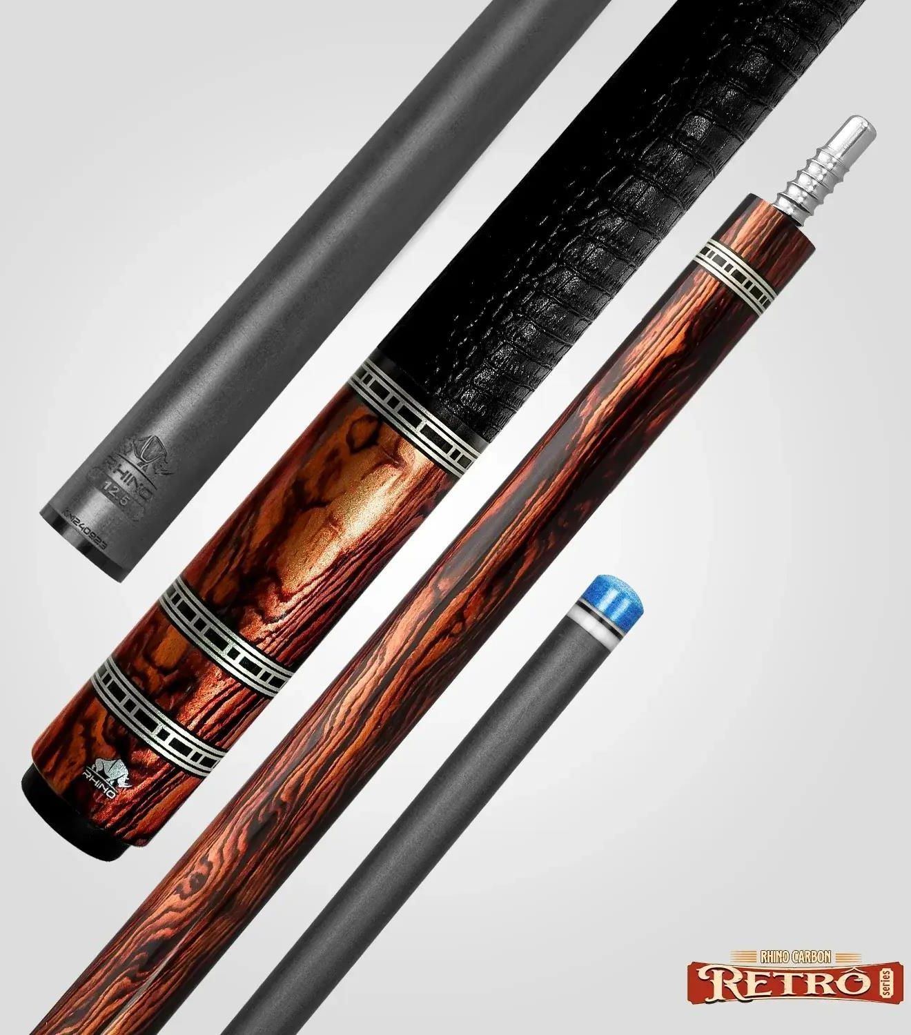 Kij bilardowy 2-cz. Rhino RETRÔ - Cocobolo LWP Zainspirowany wykwintnym drewnem Cocobolo, kij RETRÔ Cocobolo Leather Wrap & Point emanuje luksusem i wyrafinowaniem. Kij posiadaluksusową owijkę z wzorem jaszczurzej skóry, podkreśloną pięcioma eleganckimi pierścieniami i uderzającym, stylowym …