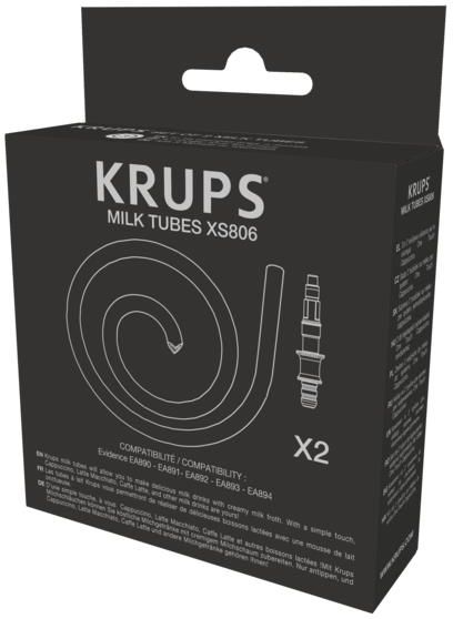 KRUPS Zestaw dwóch rurek do spieniania mleka XS806 kompatybilne z serią EA890 i EA894 Zestaw akcesoriów do podłączenia systemów mlecznych, w którego skład wchodzą 2 wężyki i łącznik. Przeznaczony do ekspresów Krups z linii Evidence jak EA890110, EA890810, EA891810, EA891C10, EA891D10 i EA891110.