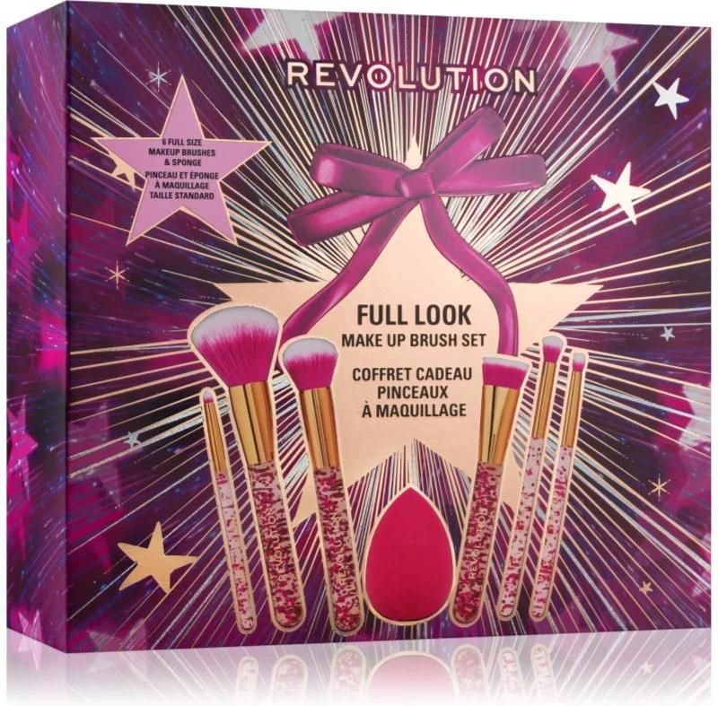 Makeup Revolution Xmas 2025 Full Look, 1 szt., Zestawy pędzli do makijażu dla kobiet, Profesjonalni wizażyści nie mogą obejść się przy aplikacji makijażu bez wysokiej jakości pędzli. Zainspiruj się ich sztuką i daj szansę pędzlom, zamiast nakładać makijaż palcami. Zestaw pędzli do makijażu Makeup …