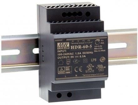Mean Well HDR-60-12 to zasilacz na szynę DIN 54W 12V 4.5A. HDR to ekonomiczna seria ultra cienkich zasilaczy na szynę DIN o mocach od 15 do 150 W, przystosowana do montażu na szynach montażowych TS-35 / 7,5 lub TS-35/15. Dzięki wąskiej obudowie mamy możliwość zaoszczędzić miejsce w szafkach montażowych - czyni to serię bardzo ciekawą pozycje wśród zasilaczy Mean Well. Cała seria zasilana jest napięciem z zakresu 85VAC do 264VAC i jest zgodna z normą EN61000-3-2 oraz normą UE dotyczącą prądu harmonicznego. Seria HDR występuje w plastikowej obudowie II klasy izolacji, która może skutecznie chroni użytkownika przed zagrożeniami elektrycznymi. Proponowane przez producenta moce od 15 do 150W, występują z napięciami wyjściowymi z zakresu 5 - 48V co w połączeniu z wydajnością sięgającą 90% daje nam duże możliwości zastosowania zasilaczy. Cała seria może pracować w temperaturze otoczenia od -30 do +70°C przy chłodzeniu swobodnym obiegiem powietrza. Pobór mocy bez obciążenia <0.3W, jak i zabezpieczenia przeciwzwarciowe, przeciążeniowe, nadnapięciowe czynią tą serię bardzo konkurencyjnym rozwiązaniem dla zastosowań domowych i przemysłowych. Zastosowanie: Automatyka przemysłowa: Sterowniki PLC, panele HMI, czujniki i przetworniki. Systemy bezpieczeństwa: Monitoring wizyjny (CCTV), systemy alarmowe. Telekomunikacja i IT: Urządzenia sieciowe, systemy UPS. Elektronika użytkowa: Drukarki, skanery, oświetlenie LED. Automaty vendingowe i kioski informacyjne: Automaty sprzedażowe, kioski informacyjne. Przemysł motoryzacyjny: Linie produkcyjne, systemy testowe. Przemysł energetyczny: Systemy zarządzania energią, magazynowanie energii Najważniejsze cechy: napięcie zasilania: 85-264VAC lub 120-370VDC montaż na szynie DIN TS35 / 7.5 lub 15 zakres temperatury pracy od -30 do +70°C pobór mocy bez obciążenia <0.3W możliwość regulacji napięcia wyjściowego zabezpieczenie przeciwzwarciowe, przeciążeniowe, nadnapięciowe chłodzone wolnym obiegiem powietrza zgodność z LPS wykonane w II klasie izolacji dioda LED - sygnalizacja pracy zgodność z normami UL-60950-1/508/1310, EN60950-1/61558-2-16 3 lata gwarancji Mean Well HDR-60-12Wyjście 12V, 0~4.5A Tolerancja +/-1% Zakłócenia 120mV Wydajność 88% Wymiary 52.5 x 90 x 54.5 mm