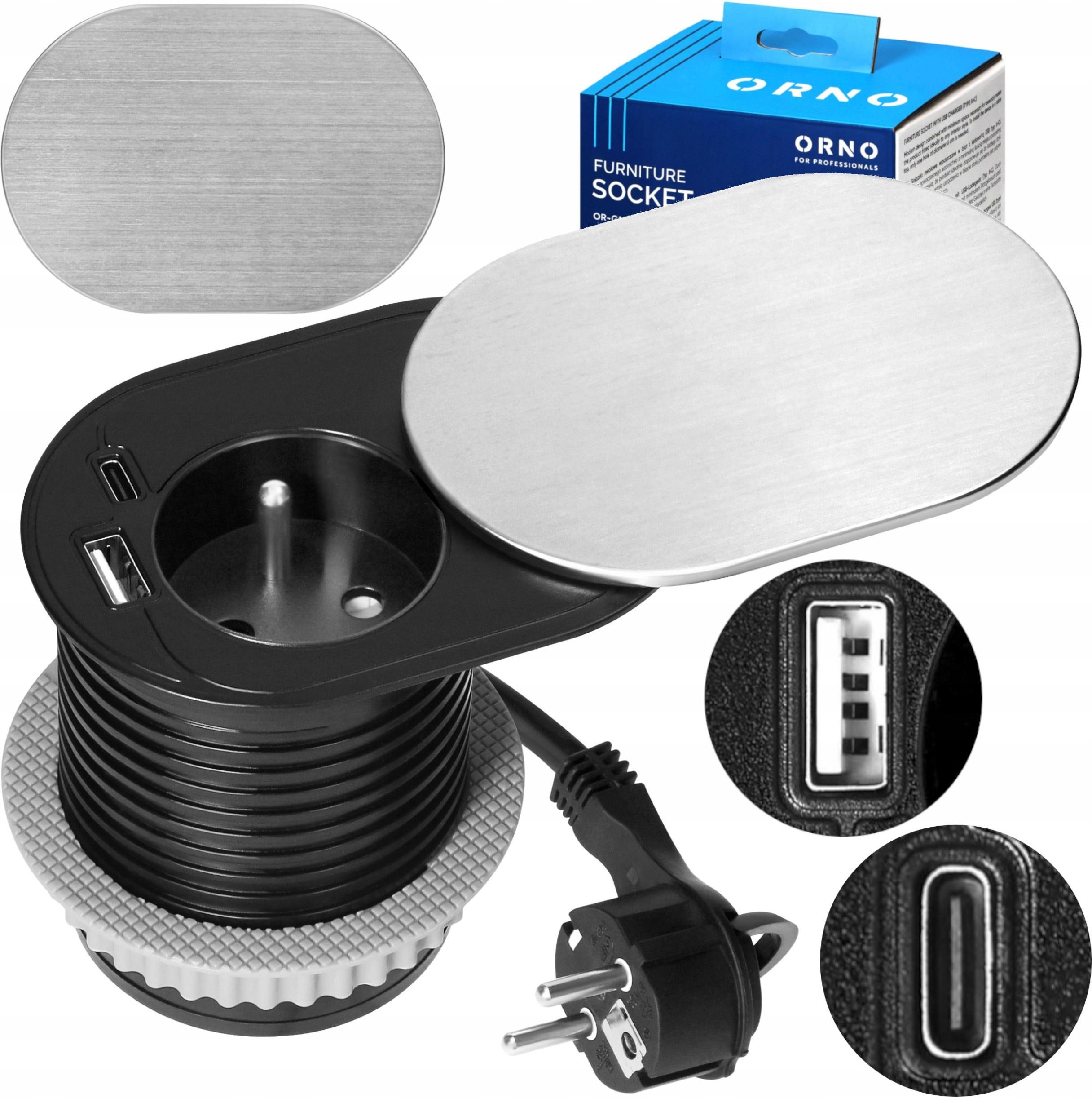 Gniazdo Wpuszczane Chowane w Blat USB USB-C Przesuwana Pokrywa Srebrne 1,9m MODEL: ORNO OR-GM-9042/G Główne cechy produktu GNIAZDO WPUSZCZANE W BLAT - Gniazdo meblowe Ø6cm wpuszczane w blat z pokrywką, która chroni gniazdo sieciowe przed kurzem i zabrudzeniem to nie tylko praktyczne rozwiązanie do podłączania urządzeń, ale także elegancki dodatek do każdego nowoczesnego wnętrza. Regulacja dostosowania do grubości blatu ułatwi montaż na wybranej powierzchni. Gniazdo przeznaczone do montażu w biurkach, blatach i stołach. PRZESUWANA PORKYWA - Przesuwna, aluminiowa srebrna pokrywa w stylowym wykończeniu zabezpiecza źródło prądu przed dziećmi. ŁADOWARKA 1x USB + 1x USB-C - Wbudowana ładowarka z dwoma portami USB i USB-C umożliwia podłączenie telefonu, tabletu i innych urządzeń. PRZEWÓD O DŁUGOŚCI 1,9m - Gniazdo posiada zainstalowany przewód o długości 1,9 m, zakończony wtyczką kątową z chowanym uchwytem. Typ Gniazda: 1x ~230V french (typ E) "z bolcem" Liczba złączy USB: 2 Typ złącza: 1x USB-A, 1x USB-C Napięcie wyjściowe ładowarki USB: 5V / 3,4A Max. obciążenie: 3860W, 16A Kolor: srebrny 2x Ładowarka USB (1x USB-A oraz 1x USB-C) Dwa porty ładowania (USB + USB-C), umożliwiające ładowanie urządzeń zasilanych kablem USB. Po podłączeniu odpowiedniego kabla, gniazdo umożliwia ładowanie większości telefonów, tabletów i urządzeń mobilnych. Typ portów USB: 1x USB-A + 1x USB-C Napięcie wyjściowe ładowarki USB: 5V Max. prąd wyjściowy: 3,4A Parametry techniczne Napięcie zasilania: 230V~, 50Hz Max. obciążenie: 3680W, 16A Ilość gniazd sieciowych: 1 Standard gniazda: French (typ E) Ładowarka USB: Tak Liczba złączy USB: 2 Typ złącza: 1x USB-A, 1x USB-C Napięcie wyjściowe ładowarki USB: 5V / 3,4A Stopień ochrony: IP20 Długość przewodu: 1,9 m Rodzaj przewodu: H05VV-F3x1,0mm2 Materiał: Tworzywo sztuczne + Aluminium Kolor: Srebrny Montaż: Wpuszczane w blat Wymiary Wymiary: 70 x 100 x 85mm (szer./wys./gł.) Wymiary otworu montażowego: Ø64 / 80 mm (szer./wys.) Zestaw zawiera Oryginalnie zapakowane gniazdo wpuszczane w blat - 1 szt. Instrukcja montażu Karta gwarancyjna