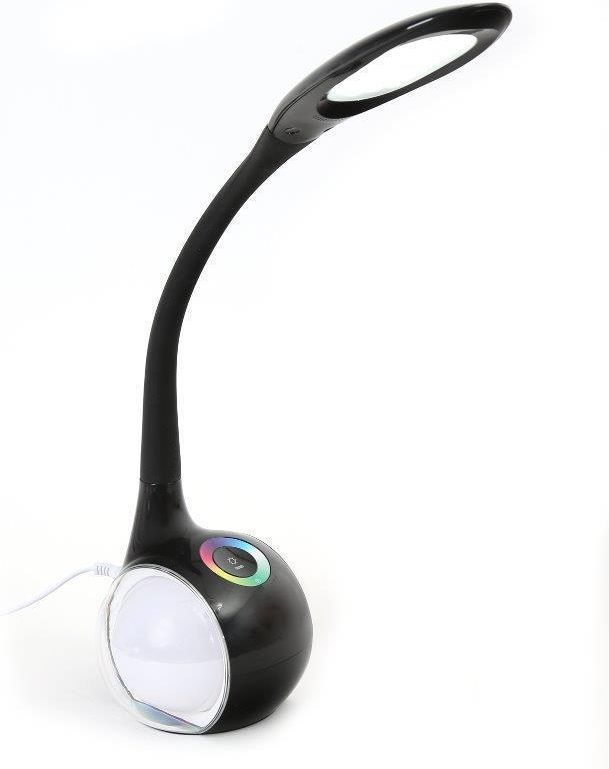 LAMPKA BIUROWA LED 7W PLATINET PDL20BL Lampka biurkowa LED z funkcją zmieniającej kolor lampki nocnej. Elegancka i funkcjonalna lampka LED RGB, z podświetlaną podstawą (funkcja lampki nocnej), posiada możliwość ustawienia niemal każdej barwy podstawki dzięki diodom RGB z płynną regulacją. Górna lampka posiada trzy stopnie świecenia - od delikatnego, nastrojowego po silne, ale bezpieczne oświetlenie idealne do czytania lub do pracy. PDL20 świetnie się sprawdzi również w biurze, pracy czy nawet warsztacie dzięki ruchomemu ramieniu z bardzo szerokim zakresem ruchów. NAJWAŻNIEJSZE CECHY Lampka PLATINET posiada możliwość regulacji intensywności świecenia oraz możliwość ustawienia dowolnego koloru lampki nocnej. Podstawa może świecić niezależnie od głównego oświetlenia. Poza tym użytkownik ma możliwość wyboru koloru świecenia kulistej podstawy lampki poprzez wybranie jednej spośród 256barw RGB lub może włączyć lampkę w tryb automatyczny i kula będzie sama płynnie zmienić barwy w pętli trwającej kilka sekund. SZCZEGÓŁY PRODUKTU Moc znamionowa: max 7.0W Znamionowy strumień świetlny: max 260 lm (28, 108, 260lm) Temperatura barwowa: 5500K Napięcie ładowarki: AC100-240V 50/60Hz Prad lampy: DC5V/1A Kąt świecenia: 120° Temperatura pracy: - 20-+40°C Współczynnik mocy: >0.4 Rodzaj i ilość LED: 34PCS SMD3528 CRI: >80 Ra Czas startu: <0.5 S 60% wartości strumienia świetlnego: <1 s 95% wartości strumienia świetlnego: <2 s Żywotność: 30 000 godz. Znamionowa trwałość lampy: 30 000 godz. Liczba cykli włącz/wyłącz: 15 000 Stopień ochrony IP: IP20 Wymiary: 115 x 540mm Kolor obudowy: czarny Współczynnik zachowania strumienia świetlnego na zakończenie nominalnego okresu trwałości: >0.7