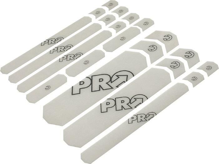 PRO zestaw do zabezpieczenia ramy Zestaw różnych naklejek ochronnych na ramę Zabezpiecza rowery przed zarysowaniami i uderzeniami Pasuje do e-bike’ów Zestaw 22 naklejek Wykonane z wytrzymałego tworzywa o grubości 0,6 mm Kolor: Przezroczysty Materiał: PU Kod producenta: PRAC0143