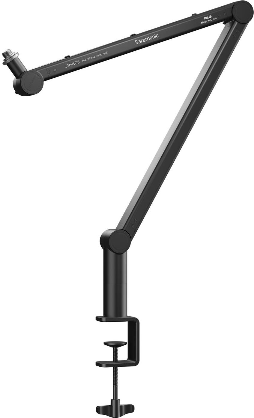 Ramię mikrofonowe do biurka Saramonic SR-HC5 Ramię mikrofonowe Saramonic SR-HC5 to doskonałe rozwiązanie dla vlogerów, streamerów, podcasterów i producentów muzycznych, którym zależy na optymalnej ergonomii stanowiska pracy. Zastosowanie solidnego zacisku "C-Clamp" pozwala szybko i wygodnie połączyć akcesorium z blatem lub biurkiem. Wykonane z wysokiej jakości stopu aluminium urządzenie zapewni Ci pełną kontrolę nad pozycją mikrofonu. 3 przeguby, solidne zaciski oraz zintegrowane zaczepy ułatwiające organizację kabla to wszystko, czego potrzebujesz, aby stworzyć profesjonalną i uporządkowaną przestrzeń nagraniową. Możliwość pracy z gwintami 3/8" oraz 5/8", zapewni jeszcze większą wszechstronność w kwestii doboru mikrofonów.