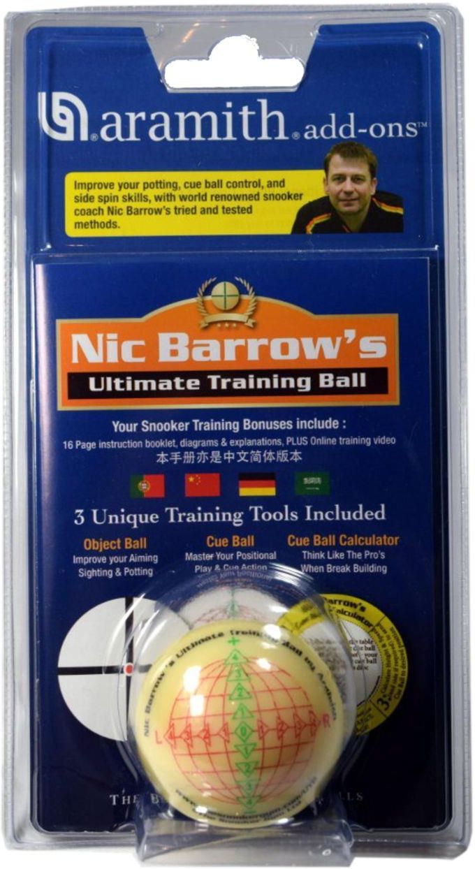Bila treningowa ARAMITH Ultimate Training BallBila treningowa do snookera polecana przez światowej sławy trenera snookera Nick'a Barrows'a. Wykonana przez belgijską firmę Aramith z najwyższej jakości żywicy fenolowej. Zawiera 16. stronicową książeczkę z diagramami i objaśnieniami. Przeznaczona zarówno dla poczatkujących graczy jak i zaawansowanych profesjonalistów. Znakomicie ułatwia trening i pozwala łatwiej zrozumieć grę pozycyjną, rotację oraz kąty pod jakimi należy trafiać bile aby znalazły się łuzie.