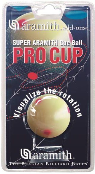 Bila treningowa ARAMITH PRO-CUP biała 57,2 mm Bila wykonana z najlepszej jakości termoutwardzalnej żywicy fenolowej. Armith Pro-Cup umożliwia rozwój umiejętności. Dzięki kropkom naniesionym na powierzcchnię, łatwiej zlokalizujesz środek bili, co ułatwi naukę rotacji. ARAMITH training ball PRO-CUP white 57,2mm made of the best thermosetting resins Aramith Pro-cupused in nearly all official championships will improve your performance six red dots will allow you to show the intended or unintended ball rotation