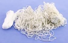 MOCNA SIATKA DO BRAMEK PIŁKARSKICH o wymiarach: 240cm x 160cm Dane techniczne: wymiary siatki: szer. 240cm, wys. 160cm, głębokość na dole 100 cm, na górze 30 cm mocny sznurek PP (poliropylen) o grubości 3mm, sznurek potrzebny do montażu siatki do bramki w zestawie, kolor biały. Siatka nowa w …