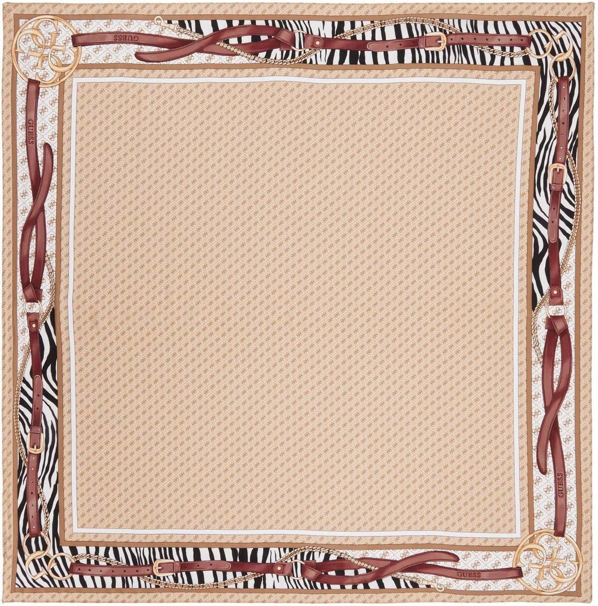 Dodaj elegancji i stylu swojemu lookowi dzięki tej wyjątkowej apaszce damskiej marki Guess. Wykonana z wysokiej jakości wiskozy, zapewnia komfort noszenia oraz subtelny, naturalny wygląd. Materiał: 100% wiskoza- miękka i przyjemna w dotyku, idealna na co dzień i na specjalne okazje. Wymiary: 130 x 130 cm – doskonałe do różnorodnych stylizacji, od klasycznego wiązania po kreatywne ozdoby. Design: Chusta z charakterystycznym printem logo 4G oraz motywem łańcuszka, dodającym elegancji i luksusowego charakteru. Ta uniwersalna apaszka świetnie uzupełni zarówno codzienne, jak i eleganckie stylizacje. Doskonale sprawdzi się jako akcent do sukienek, bluz, marynarek czy płaszczy.