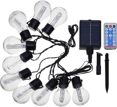 Girlanda solarna VERDENIA Galileo 4,7 m – 10 żarówek LED, ciepła barwa 2700K, zasilanie solarne, pilot w zestawie, IP44, czas świecenia do 8h, wykonana z tworzywa sztucznego. Ekologiczne oświetlenie ogrodowe, które automatycznie włącza się po zmroku i tworzy nastrojową atmosferę.