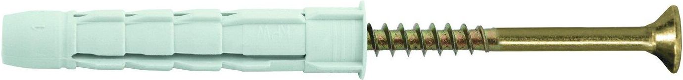 Kołki uniwersalne 6,0 x 35 z wkrętem z łbem stożkowym PZ 3,5 x 45 blister 14 szt. Kołek uniwersalny do wszystkich podłoży z wkrętem z łbem stożkowym z gniazdem PZ. Zastosowanie: Mocowanie elementów wyposażenia mieszkania. Właściwości Średnica [mm]: 6 Materiał: Poliamid / Stal Wymiary korpusu Lk x dk [mm]: 6 x 35 Średnica korpusu dk [mm]: 6 Średnica kołnierza korpusu Dk [mm]: 9 Długość korpusu Lk [mm]: 35 Materiał korpusu: Poliamid Wymiary wkręta / śruby / trzpienia dw x Lw [mm]: 3,5 x 45 Średnica wkręta / śruby / trzpienia dw [mm] : 3,5 Długość wkręta / śruby / trzpienia Lw [mm] : 45 Materiał wkręta / śruby / trzpienia / gwoździa: Stal Grubość powłoki ochronnej [µm]: 5 Typ łba wkręta / śruby / trzpienia: Stożkowy Typ gniazda wkręta / śruby / trzpienia: PZ-2