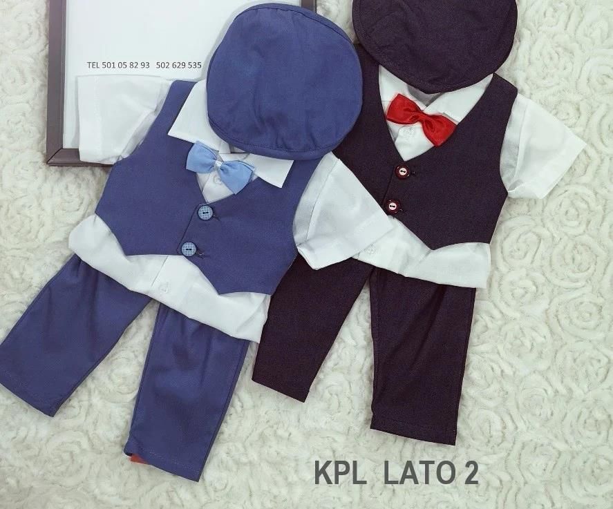 KOMPLET DO CHRZTU dla chłopca niebieski 5 - CZĘŚCIOWY KOMPLET DO CHRZTU DLA CHŁOPCA, rozmiar 56 - 104 KAMIZELKA, SPODNIE I KASZKIET KOLOR NIEBIESKI. Tkanina 100 % poliester. KAMIZELKA ZAPINANA NA DWA GUZICZKI KOSZULO- BODYZ KRÓTKIM RĘKAWEM,100 % BAWEŁNY. GÓRA KOSZULKI ZAPINANA NA GUZICZKI, DÓŁ BODY ZAPINANE NA ZATRZASKI MUSZKA NA SILIKONOWEJ GUMCE KTÓRA NIE UWIERA MALEŃSTWA W SZYJKĘ. BARDZO WYGODNA DO ZAKŁADANIA, IDEALNIE SIĘ ROZCIĄGA A PO CHWILI WRACA DO STANU SPRZED ROZCIĄGNIĘCIA KASZKIET Z DASZKIEM SPODNIE DŁUGIE Z GUMECZKĄ W PASIE ELEGANCKI I WYJĄTKOWY KOMPLET USZYTY PRZEZ NAS Z NAJLEPSZEJ JAKOŚCI BARDZO MIŁEJ I PRZYJEMNEJ W DOTYKU PODOBNEJ DO CIENKIEGO DŻINSU PRZEWIEWNEJ TKANINY. POLECANY NA LATO KOMPLETY DOSTĘPNE w dwóch kolorach, niebieski i granatowy a także w wersji z krótkimi spodenkami WSZYSTKO WYKONANE Z WIELKĄ STARANNOŚCIĄ I DBAŁOŚCIĄ O SZCZEGÓŁY. PERFEKCYJNIE WYKOŃCZONE. ELEGANCJA I KOMFORT Odkryj nasz elegancki komplet do chrztu dla chłopca niebieski, łączący w sobie styl a także komfort, idealnie dopasowany do tego wyjątkowego dnia. Zestaw składa się z pięciu starannie zaprojektowanych elementów, dostępnych w rozmiarach 56-104, zapewniając dopasowanie dla maluszka na każdym etapie rozwoju. W skład kompletu wchodzi granatowa kamizelka, spodnie oraz kaszkiet z daszkiem. Wszystkie elementy wykonane z wysokiej jakości tkaniny poliestrowej, która jest przewiewna, a także lekka i przyjemna w dotyku. Kamizelka zapinana na dwa guziczki dodaje elegancji, jednocześnie podkreślając stylowy charakter stroju. Długie spodnie z gumeczką w pasie gwarantują swobodę ruchów a także idealne dopasowanie, elegancki kaszkiet stanowi stylowy akcent całej stylizacji. Cały komplet został uszyty z najwyższą starannością z tkaniny przypominającej cienki dżins, dzięki czemu jest przewiewny i doskonały na letnie uroczystości. Dopełnieniem zestawu jest koszulo-body z krótkim rękawem. Wykonane w 100% z miękkiej bawełny, która zapewnia maksymalny komfort dla delikatnej skóry dziecka. Zatrzaski na dole body a także guziczki na górze koszulki ułatwiają przebieranie maluszka. Urocza muszka na silikonowej gumce, która nie uciska szyjki dziecka, zapewnia wygodę noszenia i elastyczność. ZOBACZ INNE NASZE KOMPLETY DLA MAŁYCH DŻENTELMENÓW>> NAJLEPSZY WYBÓR Dostępny w dwóch klasycznych kolorach – granatowym i niebieskim – oraz w wersji z krótkimi spodenkami, nasz komplet do chrztu to bez wątpienia idealne połączenie elegancji i wygody. Perfekcyjne wykończenie każdego elementu gwarantuje, że Twój maluszek będzie wyglądał wyjątkowo, a Ty zyskasz piękną pamiątkę na lata. Do kompletu możesz dobrać również marynarkę, kurteczkę ibuciki, aby dopełnić komplet lub skomponować własny zestaw i dobierać dodatki w naszym sklepie>>