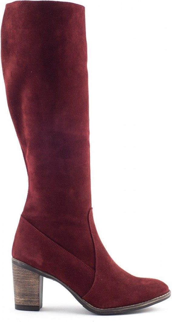 Kozaki damskie ocieplane na słupku bordowe - Bordo Siemiatycze