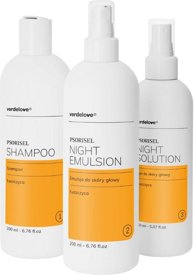 Psorisel Verdelove Szampon 200 ml, płyn 150 ml i emulsja 200 ml do pielęgnacji skóry głowy z objawami łuszczycy Siemiatycze