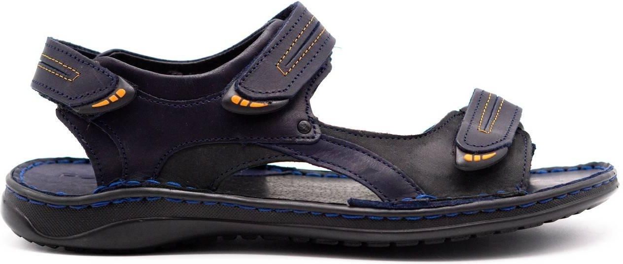 Sandały męskie skórzane na rzep na lato POLSKIE SA04 granatowe z czarnym Sandały męskie w sportowym stylu spodobają się panom bez względu na wiek. To ten rodzaj obuwia, który po prostu powinien mieć każdy, ponieważ sprawdzą się zarówno podczas wakacyjnego wyjazdu, jak i jako letnie obuwie domowe i …