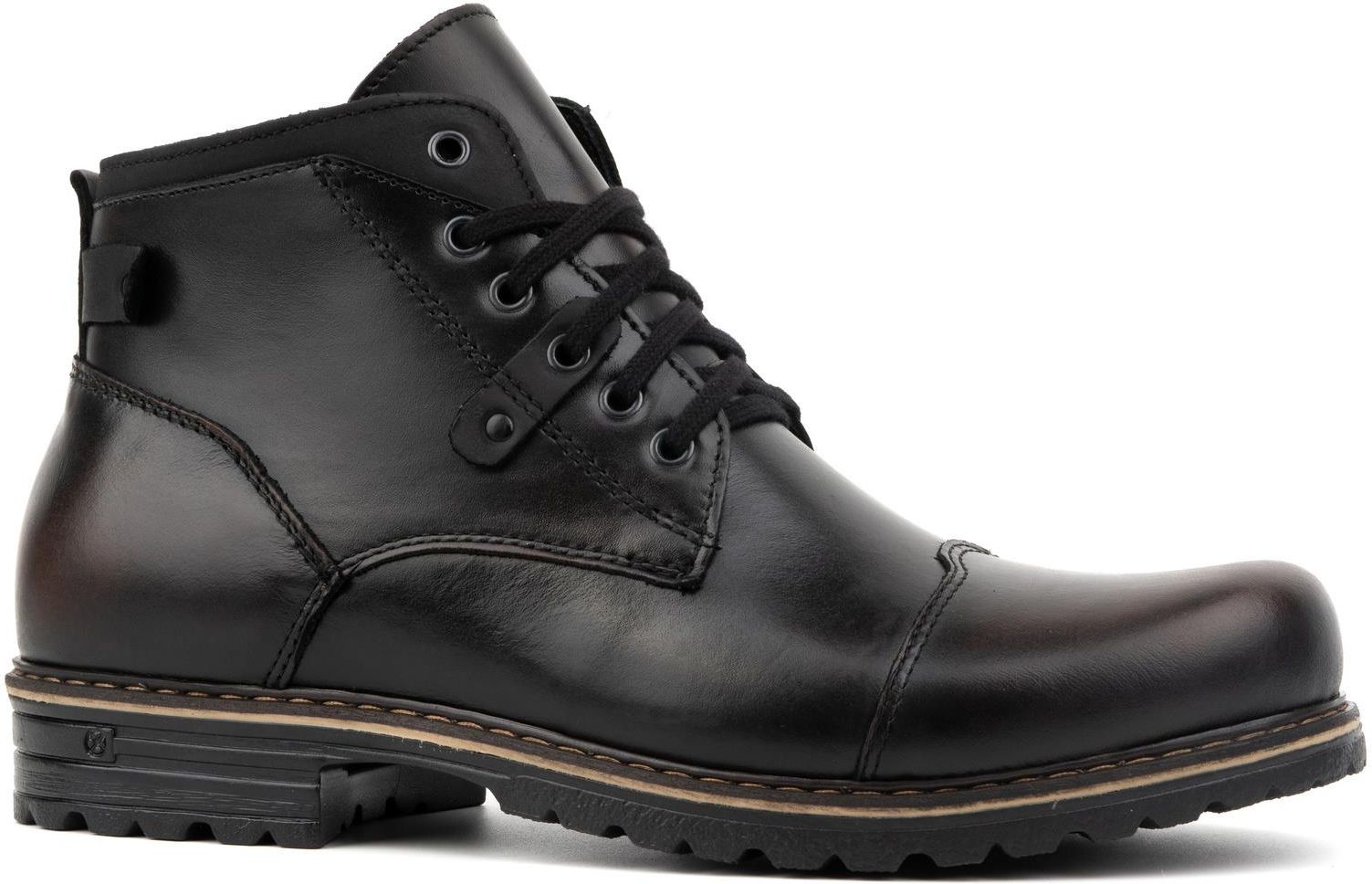 Trzewiki zimowe męskie ocieplane ze skóry naturalnej C15S czarny kabir Siemiatycze