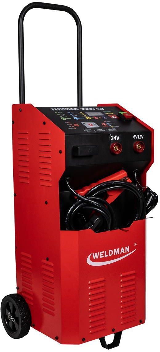 Prostownik Inteligentny z Rozruchem WELDMAN GRAND 520 GRAND 520 to zaawansowany prostownik mikroprocesorowy z funkcją rozruchu, przeznaczony do ładowania akumulatorów kwasowo-ołowiowych, takich jak: ✅ WET (płynne kwasowe) ✅ GEL (żelowe) ✅ MF (bezobsługowe) ✅ AGM (z matą z włókna szklanego) ✅ EFB …