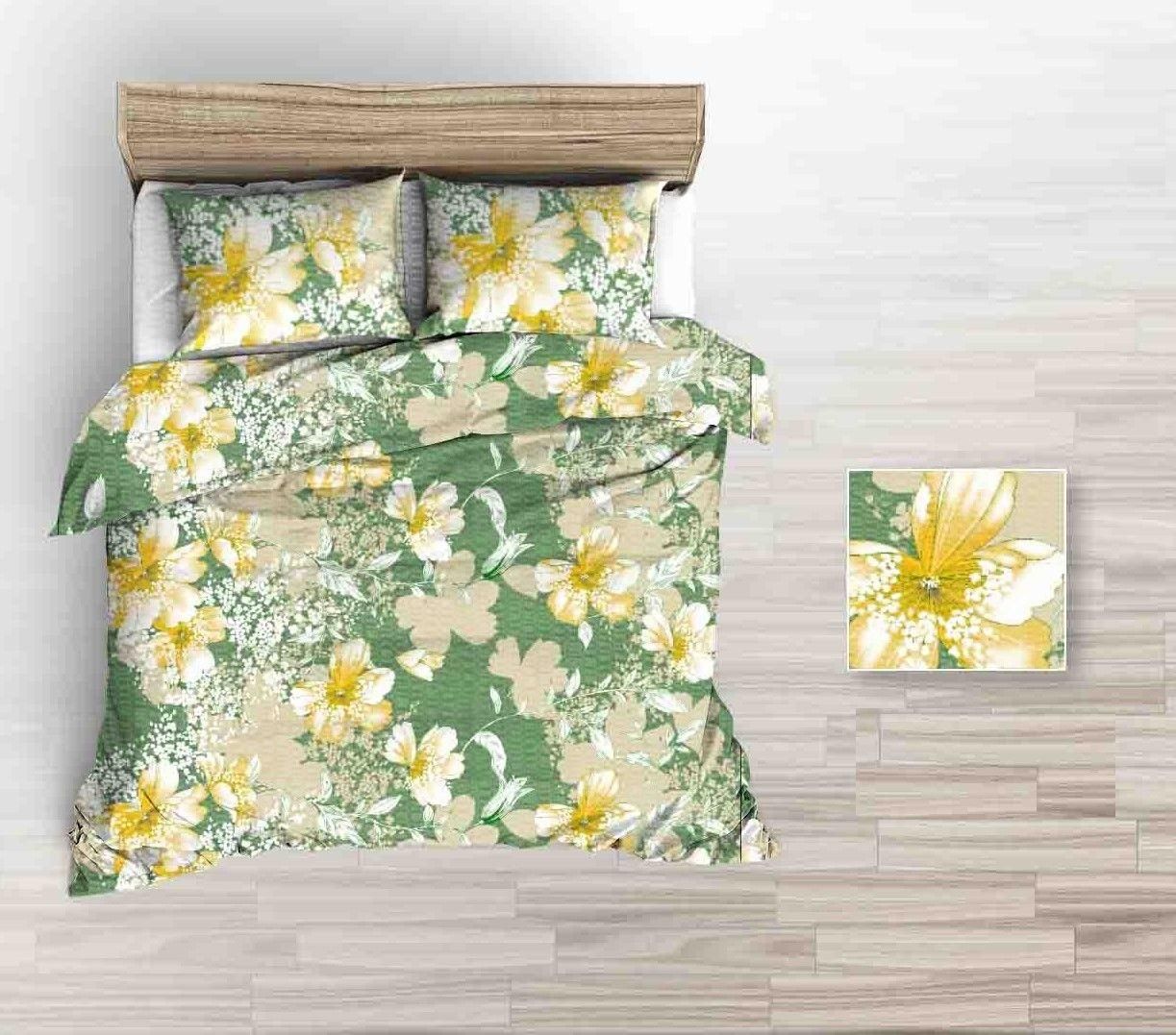 Fan Pościel Z Kory 160X200 Zielona Duże Żółte Beżowe Rysowane Kwiaty Sieradz
