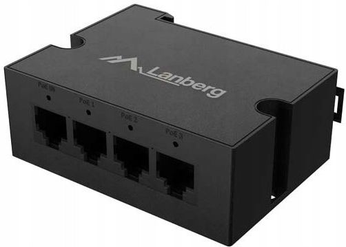 Extender switch PoE DIN-FE4-AT-30W Lanberg Extender PoE (często nazywany też repeaterem lub „wzmacniaczem” PoE) to praktyczny element w instalacjach, gdzie potrzebujemy uruchomić urządzenia daleko od szafy teletechnicznej, a klasyczne ograniczenie 100 m na Ethernet i zasilanie PoE staje się barierą. Taki switch PoE działa jak aktywny rozdzielacz: regeneruje sygnał i przenosi zasilanie PoE dalej, dzięki czemu w sieci LAN możesz bezpiecznie „dociągnąć” zasilanie i transmisję do kolejnych punktów – bez dodatkowego zasilacza w terenie i bez kombinowania z pośrednimi gniazdami power. W ofercie Lanberg dostępne są 2 switche extender PoE w formie kompaktowego modułu DIN: oba mają 4 porty w układzie 1x wejście PoE (PoE IN) + 3 porty wyjściowe (PoE OUT). Różnią się klasą PoE i przepustowością: DIN-FE4-AT-30W – PoE+ (802.3at/802.3af), Fast Ethernet do 100 Mb/s, budżet PoE 28 W (model opisywany na tej stronie). DIN-GE4-BT-90W – PoE++ (802.3bt / 802.3at / 802.3af), Gigabit Ethernet do 1 Gb/s, budżet PoE 85 W CECHY PRODUKTU Sygnalizacja LED stanu zasilania (PWR) oraz aktywności portów (Link/Act), co ułatwia szybki serwis w terenie. Pozwala na przedłużenie sygnału Ethernet i zasilania PoE o kolejne 100 metrów Montaż na szynę DIN (TS-35) z metalowym klipsem SPECYFIKACJA PRODUKTU Liczba portów Ethernet: 4 Ilość portów POE: 4 Specyfikacja portów: 4x 100BASE-T PoE+ Maksymalna prędkość łącza sieciowego: 100 Mbps Rodzaj łącza sieciowego: Ethernet Chipset: Realtek - RTL8305NB Obsługa PoE: Tak Obsługiwane standardy PoE: 802.3at, 802.3af Typ zasilania PoE: PoE+ Całkowity budżet PoE: 28 W Maksymalna moc na port: 25 W Tablica adresów MAC: 2K Chłodzenie: Pasywne Zużycie energii: 1,6 W Sygnalizacja pracy: Dioda LED Standardy przewodowe: IEEE 802.3i 10Base-T, IEEE 802.3u 100Base-TX, IEEE 802.3x (Flow-Control) Funkcje: Automatyczne MDI/MDI-X, Flow control, MAC autolearning Wymiary: 79 x 58 x 24 mm Waga: 0,59 kg Zalecana temperatura otoczenia: od -10 do 40 °C Zalecana wilgotność otoczenia: od 10 do 90 % Najważniejsze cechy DIN-FE4-AT-30W, które realnie pomagają instalatorom i administratorom LAN 4-portowy układ RJ45: 1x port wejściowy + 3 porty wyjściowe PoE (idealne, gdy trzeba dodać „odnogę” w instalacji). Sygnalizacja LED PWR oraz Link/Act na portach – szybka diagnostyka i serwis w terenie. Przedłużenie LAN i zasilania PoE o kolejne 100 m na jednej skrętce UTP (czyli dalej „jednym kablu”). Montaż DIN na szynę TS-35 z metalowym klipsem – wygodnie, pewnie i „szafowo”. Zwiększ zasięg zasilania PoE oraz sygnału sieciowego w sieci LAN o 100 m To najczęstszy scenariusz: kamera do monitoringu, kontroler dostępu, elementy alarmu, wifi / punkty dostępowe i inne urządzenia sieciowe zasilane w standardzie PoE są „za daleko” od głównego przełącznika sieciowego w racku. Wtedy zamiast stawiać zasilanie 230 V po drodze, wkładasz w tor extender PoE. DIN-FE4-AT-30W działa w prosty, praktyczny sposób: odbiera dane i zasilanie PoE na wejście PoE, po czym na wyjściach zapewnia świeży sygnał Ethernet oraz PoE – czyli realnie możesz zwiększyć zasięg instalacji o kolejne 100 m. To świetne rozwiązanie, gdy potrzebujesz uruchomić kilka odbiorników PoE, np. kilku kamer w hali, na parkingu lub w długim korytarzu, a zasilanie i transmisja mają iść jednym kablu UTP. 4-portowy extender switch PoE z możliwością łączenia kaskadowego W praktyce najwięcej zyskujesz, gdy extender pracuje nie tylko jako pojedynczy moduł, ale też w układzie szeregowym. Oba modele mogą działać jako extender w konfiguracji pojedynczej oraz w połączeniu kaskadowym. Jak to wygląda w terenie? Do switcha PoE podpinasz pierwszy extender (PoE IN), a dalej możesz dołożyć kolejny i kolejny – łącznie do 3 urządzeń w szeregu (czyli kaskada 3-poziomowa / trzypoziomowa). Każdy extender „dokłada” kolejne 100 m, więc maksymalnie zyskujesz +300 m w stosunku do nominalnego zasięgu. Na każdym etapie, poza kolejnym extenderem, zostaje miejsce na dodatkowe odgałęzienie sieciowe: możesz podłączyć 2 kamer lub inne peryferia (np. czujnik IP, mały AP) – czyli dokładnie wtedy, gdy masz „po drodze” punkty, które chcesz zasilić PoE. To wygodne, gdy rozbudowujesz sieci LAN etapami, a infrastruktura ma być elastyczna i łatwa do serwisowania. Zaawansowany ekstender PoE gotowy na każde zadanie DIN-FE4-AT-30W to kompaktowy switch warstwy 2, który ułatwia życie w instalacjach PoE dzięki sprawdzonym mechanizmom transmisji: Automatyczne MDI/MDI-X – porty same dobierają sposób zestawienia par, więc nie musisz zastanawiać się nad rodzajem przewodu (patchcord/kros). Flow control (IEEE 802.3x) – kontrola przepływu ogranicza straty i przeciążenia w momentach szczytowego ruchu. MAC auto-learning + tablica MAC 2K – automatyczne uczenie adresów przyspiesza pracę i stabilizuje przełączanie w małych segmentach LAN. Wersja DIN-FE4-AT-30W wspiera standardy przewodowe IEEE 802.3i (10Base-T) i IEEE 802.3u (100Base-TX) oraz PoE+ zgodne z 802.3af i 802.3at. To ważne rozróżnienie, bo w instalacjach spotkasz też rozwiązania typu PoE passive – tutaj mówimy o standardowym, negocjowanym PoE. Jednocześnie urządzenie ma chłodzenie pasywne (bez wentylatora) i bardzo niski pobór energii – ok. 0,5 W, więc nadaje się do pracy ciągłej. Solidna, trwała obudowa oraz wygodny montaż na szynie DIN TS-35 z metalowym klipsem W instalacjach przemysłowych i technicznych liczy się nie tylko funkcja PoE, ale też montaż. Dlatego obudowa i metalowyklips na szynę DIN TS-35 to coś więcej niż detal: to realna oszczędność czasu i porządek w rozdzielni. Zalety montażu na szynie DIN dla instalatora/administratora: Szybki i prosty montaż (Snap-on) Oszczędność miejsca Łatwość modyfikacji i konserwacji Uniwersalność i standaryzacja Porządek w okablowaniu Trwałość i bezpieczeństwo Redukcja