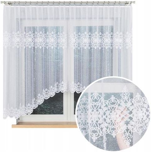 Markizeta Biała Firanka Z Żakardu Gotowa Wzór 350X155 Cm Łuk Do Pokoju Kwiaty Fala Sieradz