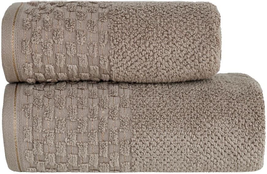 Ręcznik bawełniana frote 70x140 cm z dekoracyjną bordiurą ze złotą nitką Neptun Wprowadź do swojej łazienki odrobinę luksusu dzięki naszemu ręcznikowi bawełnianemu frote o wysokiej gramaturze 500g/m2. Dodatkowym atutem wysokiej gramatury ręcznika jest długi okres użytkowania i odporność na wszelkiego rodzaju zniszczenia. Wykonany z wysokiej jakości bawełny z ozdobną tłoczoną bordiurą, na której została umieszczona złota połyskująca nitka podkreślająca jego wyjątkowy charakter i styl. Świetnie chłonie wodę i zaskakująco szybko wysycha, co jest niezwykle istotne w codziennym użytkowaniu. Dostępny w dwóch praktycznych rozmiarach: 50 × 90 cm, idealnym do rąk lub twarzy, oraz większym 70 × 140 cm, doskonałym jako ręcznik kąpielowy. Cechy produktu Rodzaj tkaniny: bawełna frote Wzór tkaniny: z tłoczoną bordiurą i złotą nitką Skład: 100% bawełna Marka: Markizeta Jak prać ręcznik bawełniany? ręcznik należy wyprać przed pierwszym użyciem, maksymalna temperatura prania to 40°C, nie stosować bielenia oraz czyszczenia chemicznego, można prasować maksymalnie w 150°C, nie zalecamy suszenia w suszarce bębnowej.