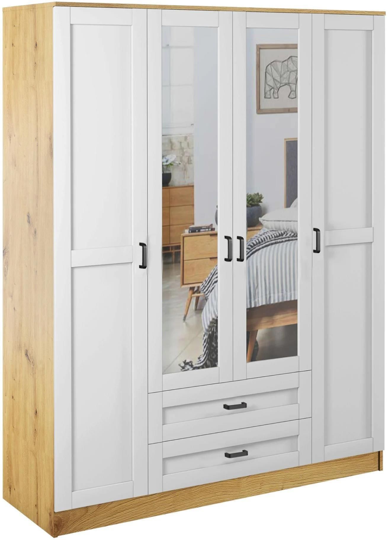 Mebel Bos Szafa Cento Ii 160X200 4D2S Dąb Artisan Biała Ramka Z Lustrem Sieradz