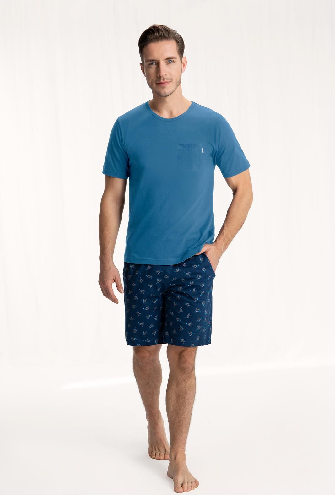 Piżama męska LUNA kod 807 turkusowa spodenki w łódki Sieradz