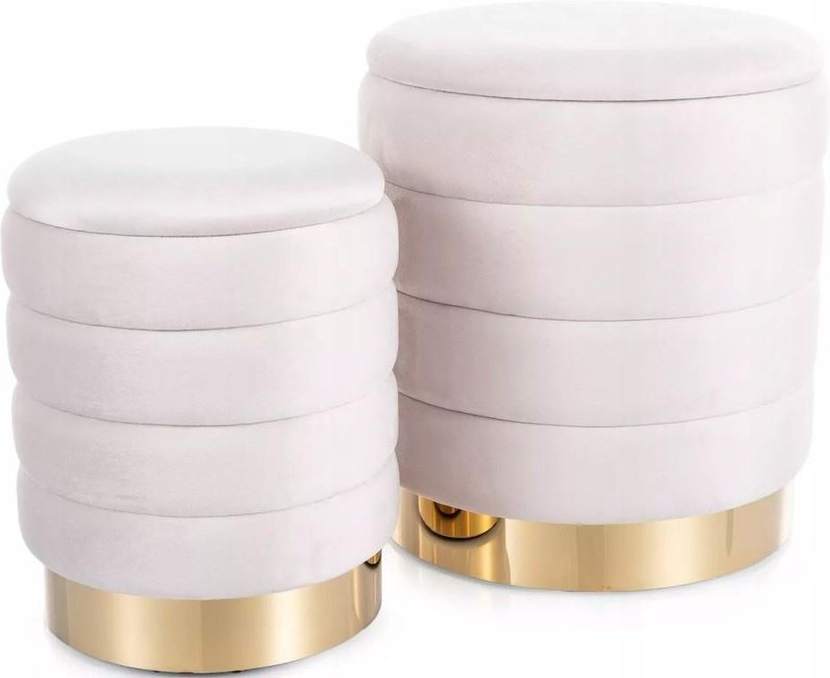 Signal Meble - Elegancja, Funkcjonalność, Unikalny Styl PUFA BEŻOWA Z POJEMNIKIEM SCHOWKIEM OZDOBNA ZESTAW PUF 2szt. BRITTA SIGNAL Zestaw puf z pojemnikiem, tkanina aksamit, kolor: jasny beż, tap. 250. Mniejszy puf chowany w duży, wymiary mniejszego fi - 30, h -38 cm. Dane techniczne Waga: 8,2 kg Rodzaj: zestaw dwóch puf Kolor tapicerki: jasny beżowy Średnica większej pufy: 40 cm Wysokość większej pufy: 45 cm Średnica mniejszej pufy: 30 cm Wysokość mniejszej pufy: 38 cm Możliwość schowania mniejszej pufy do większej