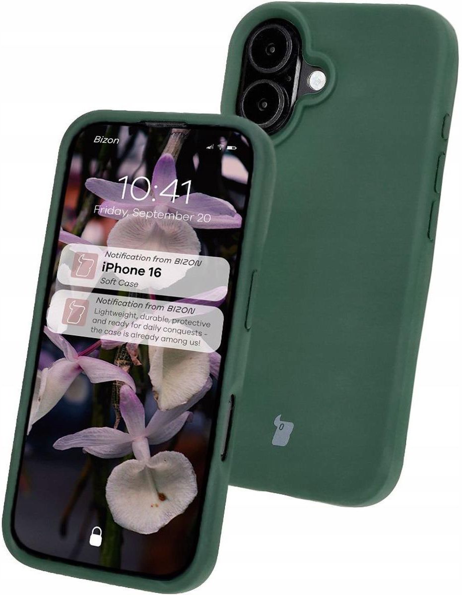 Bizon Soft Case Do Apple iPhone 16 Wersja kolorystyczna: Dark Green (ciemnozielona) Materiał: płynny silikon + poliwęglan + mikrofibra Ochrona przed zabrudzeniami i w razie upadku Doskonałe dopasowanie Wyściółka z mikrofibry Smukła i lekka budowa Niezbędne wycięcia Utrzymana płynność działania przycisków + zintegrowane osłony Pełne wycięcie na obiektywy Przedmiotem sprzedaży jest samo etui, pozostałe akcesoria widoczne na zdjęciach służą jedynie przedstawieniu jego funkcjonalności. Kod produktu: 5904665327838 Kod producenta: BSOCIP16DGN Etui kompatybilne ze szkłami* o wymiarach mniejszych niż (dług./szer.): 14,64 x 6,92 cm * Bolączki z dobraniem pasującego szkła? Wybierz Bizon Glass Clear ❤️! Silikonowe etui Etui marki Bizon z serii Soft Case łączy zarówno styl, jak i wytrzymałość. To elastyczna obudowa, która idealnie sprawdzi się na co dzień i ochroni Twojego smartfona przed zabrudzeniami i w razie upadku. Wykonana z trzech wysokiej jakości materiałów — płynnego silikonu, twardego poliwęglanu oraz miękkiej mikrofibrowej podszewki, zapewnia kompleksową ochronę i komfort użytkowania. Innowacyjna konstrukcja Bizon Soft Case to nie tylko solidna konstrukcja z płynnego silikonu i poliwęglanu, ale także gwarancja płynnego działania przycisków, które będą zabezpieczone zintegrowanymi osłonami! Wnętrze etui wypełnione jest mikrofibrą, która dodatkowo zabezpieczy plecki urządzenia, z kolei o bezpieczeństwo ekranu zadbają podwyższone krawędzie wokół niego. Aparat bez skaz To etui ochroni także Twój aparat! Pełne wycięcie na obiektywy wraz z podwyższonymi krawędziami stanowi dodatkową ochronę dla soczewek, zapobiegając niechcianym zarysowaniom aparatu, a dodatkowo jest kompatybilne z innymi ochronami aparatu, takimi jak lensy czy nakładki! Wyrazisty kolor Nie trać głowy, Soft Case nie traci koloru! To niezwykle trwałe i odporne na utratę koloru etui charakteryzuje się gładką, miłą w dotyku powierzchnią, która jest odporna na odciski palców. A jeśli zdarzy Ci się ją ubrudzić, to wyczyścisz ją bez najmniejszego problemu, dzięki czemu Twój telefon będzie zawsze wyglądał jak nowy! Zdjęcie poglądowe, produkt może się różnić w zależności od modelu urządzenia Swobodny dostęp Etui posiada niezbędne wycięcia i zapewnia pełen dostęp do portów i przycisków. Pokrowiec doskonale współgra z ładowaniem indukcyjnym (dotyczy modeli wyposażonych w tę funkcję).