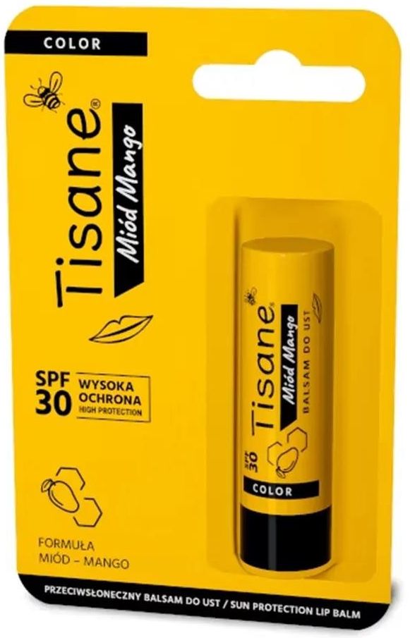 Tisane Color Balsam do ust Miód Mango SPF 30Odkryj miodowo-ziołowy skarb, który otuli Twoje usta zapachem soczystego mango. Siła natury zamknięta w balsamie Tisane - pełnym nawilżających i odżywiających składników naturalnego pochodzenia. Przenieś się w tropikalny klimat i poczuj owocową gładkość na swoich ustach. Tisane MIOD MANGO - egzotyczny rytuał dla Twoich ust o każdej porze roku! SPF30 - wysoka ochrona.Nawet przy stosowaniu produktu ochrony przeciwsłonecznej niewskazane jest długotrwałe przebywanie na słońcu.Składniki aktywne: ziołowe ekstrakty z jeżówki, melisy i ostropestu, miód pszczeli, olej kokosowy, masło mango, masło shea.Sposób użyciaNanieść cienką warstwę balsamu na usta. Stosować szczególnie jako ochronę podczas aktywności na świeżym powietrzu (np. wycieczki, rower, narty).Testowany dermatologicznieMasa netto 5,1 g