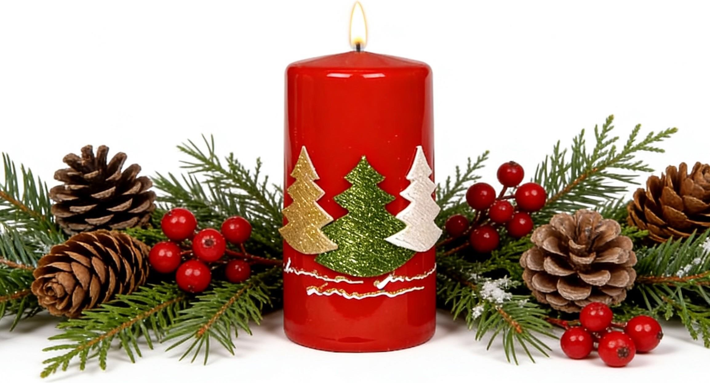 Świeca klubowa Trzy choinki w odcieniu głębokiej czerwieni to efektowna propozycja marki ADPAL, która łączy klasyczną formę z subtelnym świątecznym blaskiem. Jej matowa powierzchnia harmonijnie kontrastuje z brokatowym motywem choinek w trzech kolorach, tworząc elegancką dekorację idealną do zimowych aranżacji. Dzięki wysokości 12 cm i średnicy 5,8 cm świeca prezentuje się stabilnie i stylowo, a czas palenia sięgający około 30 godzin pozwala cieszyć się nastrojowym światłem przez wiele wieczorów. Świeca pięknie sprawdzi się jako centralna ozdoba świątecznego stołu — ustawiona na złotej, szklanej lub lustrzanej tacy stworzy wyjątkowy klimat podczas rodzinnych spotkań. Zestawiona z naturalnymi gałązkami świerku, białymi akcentami i dodatkami w kolorze złota podkreśli zimową elegancję wnętrza. Rewelacyjnie prezentuje się także na komodzie, parapecie lub w latarence, dodając pomieszczeniu przytulności i świątecznej magii. Doskonale komponuje się ze stroikami adwentowymi oraz zimowymi kompozycjami z szyszek, bombek i gałązek. Warto zwrócić uwagę, że świeca dostępna jest również w innych rozmiarach i formach, dzięki czemu można stworzyć spójną, efektowną kolekcję, idealną do dekoracji całego domu. Zestawienie kilku świec Trzy choinki w różnych wysokościach pozwala uzyskać piękny, harmonijny efekt świetlny, który idealnie dopełni świąteczne aranżacje. To nie tylko dekoracja, ale także wyjątkowy sposób na wprowadzenie ciepła i magicznej atmosfery do Twojego wnętrza. Zdjęcie aranżacyjne ma charakter poglądowy. Prezentowana aranżacja może zawierać elementy dekoracyjne niewchodzące w skład zestawu. Szczegóły dotyczące zawartości znajdują się w opisie produktu.