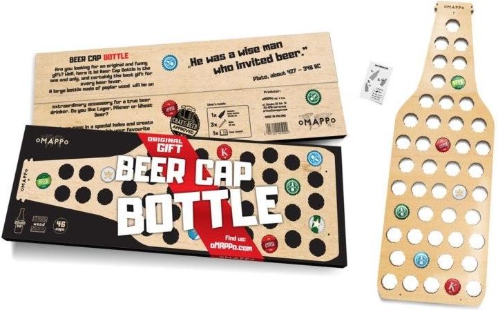 Butelka Piwosza na kapsle to oryginalna ozdoba na ścianę i prezent stworzony specjalnie dla wielbicieli złotego trunku. Piwa rzemieślnicze, małe browary i lokalne warzelnie cieszą się coraz większym powodzeniem. I każdy z nich ma inny, kolorowy kapsel. Odkrywaj świat piw rzemieślniczych z całego świata i ciesz się swoją kolekcją kapsli. Po prostu umieszczaj kapsle w specjalnie przygotowanych otworach mapy. Butelka Piwosza na kapsle mieści 46 kapsli i wykonana została z wyciętej laserowo, lakierowanej sklejki drewnianej w rozmiarze 20x60cm. Butelka jest fantastycznym dodatkiem do pomysłowych wnętrz dla osób, które chcą zachować wspomnienia cudownego smaku chmielowego napoju. Będzie oryginalnym prezentem dla każdego miłośnika piwa. NAZWA BUTELKA PIWOSZA PRODUCENT OMAPPO EAN 5907222425022 Znajdź podobne według klucza: OMAPPO (452390)
