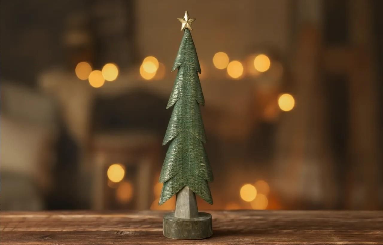 Figurka Choinka 48 cm – Art-Pol Dekoracyjna choinka marki Art-Pol to stylowa ozdoba świąteczna w rustykalnym stylu, która doskonale wpisze się w aranżacje inspirowane naturą. Wykonana z wysokiej jakości tworzywa sztucznego imitującego drewno, zachwyca realistycznym wyglądem i starannym wykończeniem. Struktura materiału, widoczne „rzeźbienia” oraz subtelne złote przecierki nadają figurce elegancki, rękodzielniczy charakter. Choinka w kolorach zieleni i brązu osadzona jest na stabilnej podstawie, dzięki czemu doskonale prezentuje się na komodzie, półce, parapecie czy świątecznym stole. To dekoracja, która wprowadzi do wnętrza ciepło, przytulność i atmosferę bożonarodzeniowych przygotowań. Dane produktu: • Marka: Art-Pol • Wymiary: 48 x 10 x 8,5 cm • Kolor: zielony, brązowy • Materiał: tworzywo sztuczne (imitacja drewna) Ta klasyczna choinka w naturalnym wydaniu to piękna propozycja dla miłośników prostych, ale efektownych dekoracji w stylu eko. Zdjęcie aranżacyjne ma charakter poglądowy. Prezentowana aranżacja może zawierać elementy dekoracyjne niewchodzące w skład zestawu. Szczegóły dotyczące zawartości znajdują się w opisie produktu.