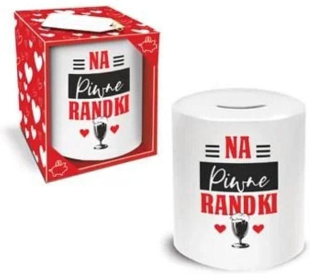Skarbonka ceramiczna z kolorowym, zabawnym nadrukiem. Wysokość: 10 cm. Średnica: 8 cm. Posiada zamykany otwór umożliwiający wyjęcie pieniędzy. Zapakowana w ozdobny kartonik.