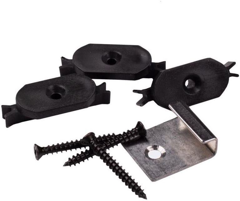 Zestaw systemowych klipsów montażowych do deski kompozytowej Kompleksowe rozwiązanie przeznaczone do montażu tarasów z desek kompozytowych. Komplet zawiera wszystkie niezbędne elementy do solidnego i estetycznego przytwierdzenia desek, zapewniając trwałość oraz stabilność konstrukcji tarasowej. W skład zestawu wchodzi: 50 sztuk plastikowych klipsów montażowych - są to specjalnie zaprojektowane klipsy, które umożliwiają szybki i wygodny montaż desek bez potrzeby wiercenia w nich otworów. Plastikowe klipsy zapewniają odpowiedni dystans między deskami, co pozwala na naturalną pracę materiału i odprowadzanie wody. 3 sztuki metalowych klipsów startowych - służą do rozpoczęcia montażu desek, zapewniając stabilne i trwałe przytwierdzenie początkowej deski do podłoża. Wykonane z metalu, gwarantują mocne osadzenie oraz zabezpieczają konstrukcję przed przesunięciami. 53 sztuki wkrętów - odporne na korozję wkręty, które precyzyjnie przytwierdzają klipsy do legarów lub innej konstrukcji nośnej, tworząc spójną i wytrzymałą strukturę. Zestaw ten jest przeznaczony do montażu około 2 m? tarasu, co czyni go idealnym wyborem do niewielkich lub modułowych projektów. Wysokiej jakości komponenty zapewniają prostotę montażu i estetyczny efekt końcowy, a także trwałość całej konstrukcji, która sprawdzi się nawet w trudnych warunkach pogodowych.