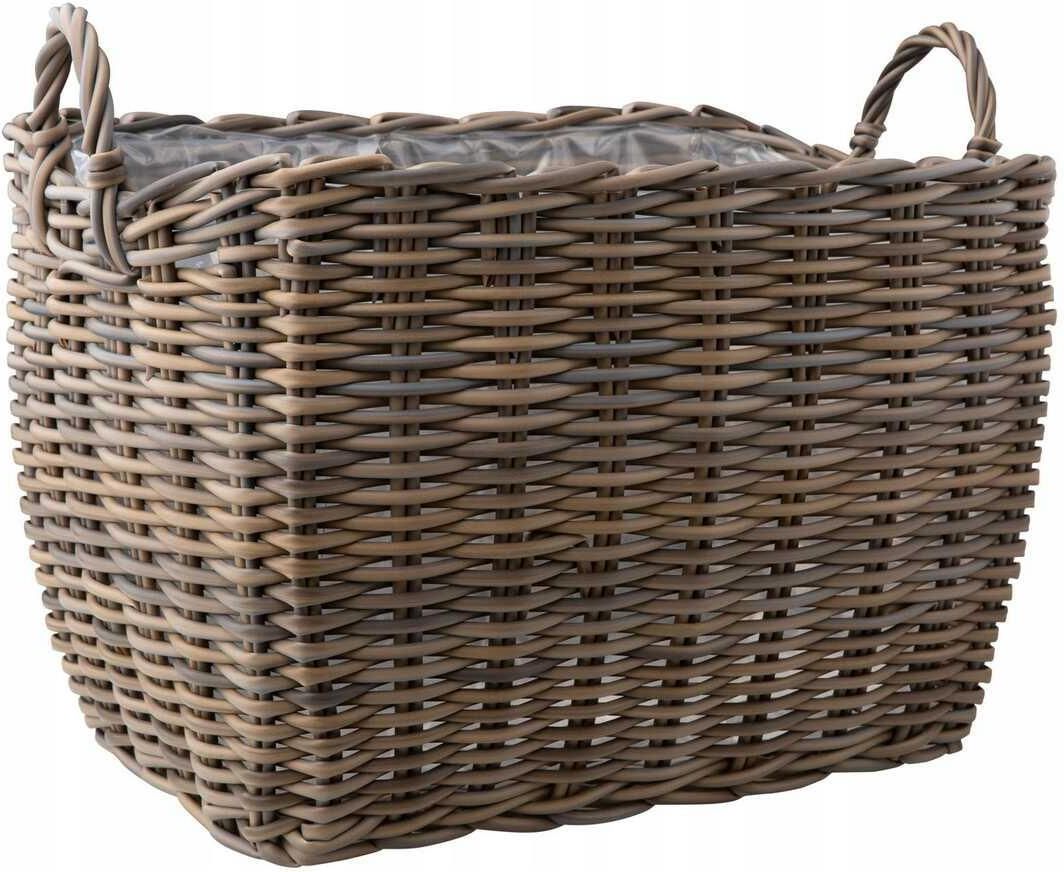 Doniczka osłonka na kwiaty imitująca rattan Patio 35cm Producent: Patio Kod produktu: 47178 Oryginalna doniczka/osłonka, marki Patio. Wykonana z tworzywa sztucznego, wyglądem świetnie przypominającego rattan. Wewnątrz donica wypełniona transparentną wyściółką z tworzywa sztucznego. Stanowi piękną ozdobę mieszkań, tarasów czy balkonów, świetnie wpasuje się w nowoczesny i minimalistyczny wystrój wnętrz. Może również zamaskować nieestetyczny wygląd donic. Cechy produktu doniczka/ osłonka z serii Jacob, wykonana z wysokiej jakości materiałów, donica imituje rattan, kolor donicy brązowy/ cappucino, wnętrze wypełnione jest wyściółką transparentną z tworzywa sztucznego, idealna do zamaskowania nieestetycznych donic kwiatów, pozwala na stworzenie pięknych kompozycji dekoracyjnych wnętrz jak również ogrodu, tarasu czy balkonu. Wymiary produktu wysokość 35 cm, szerokość 40 cm, długość 62 cm, wysokość z uchwytami 44 cm.