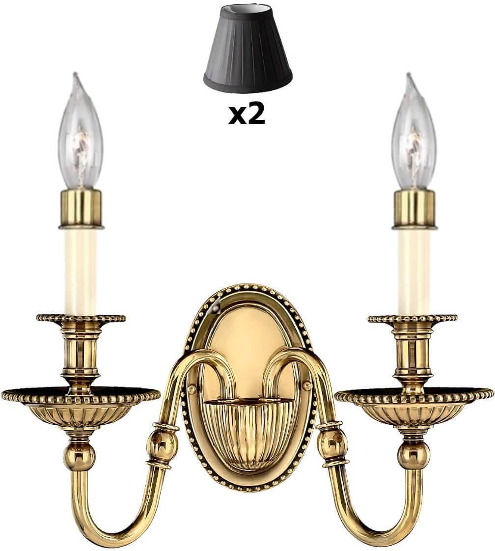 Sypialniany kinkiet z abażurami Cambridge HK-CAMBRIDGE2+2xLS162-BLK Hinkley mosiądz czarny w MLAMP łączy w sobie wyjątkowy i ponadczasowy design w najlepszym wydaniu, co stwarza szereg możliwości aranżacji przestrzeni w Twoim Domu. Oświetlenie z łatwością wkomponuje się w pomieszczenia o klasycznym i nowoczesnym klimacie. Lampa cechuje się funkcjonalnością, a jej uniwersalna forma sprawi, że jej blask światła wprowadzi komfortową i przytulną atmosferę sprzyjającą spotkaniom towarzyskim jak i odpręży po dniu spędzonym poza domem w spokojne wieczory z najbliższymi. Model Cambridge jest wykonany z praktycznych i trwałych materiałów, gwarantując jego użytkownikom radość i zadowolenie na wiele lat. Gustowny kolor mosiądz lampy sprawi, że lampa sprawdzi się zarówno w jasnych, jak i ciemnych wnętrzach. Materiały zastosowane w lampie to metal oraz tkanina dzięki temu będzie ona łatwa w pielęgnacji i w utrzymaniu czystości. Lampa posiada miejsce na 2 energooszczędnych źródeł światła LED E14 oraz została wyposażona w stopień ochrony szczelności IP20. Jeśli nie wiesz jaki rodzaj oświetlenia wybrać do oświetlenia przestrzeni wypoczynkowych lub biurowych to oprawa z serii Cambridge z pewnością się w nich sprawdzi. Dzięki ergonomicznemu kształtowi dopasujesz ją do obecnej lub dopiero tworzącej się aranżacji pokoju. Decydując się na ten model oświetlenia nie tylko odpowiednio rozświetlisz wybrane powierzchnie, ale też zyskasz zachwycającą i cieszącą oko dekorację, która nada wnętrzom niepowtarzalnego wyglądu i elegancji, akcentując zarazem ich detale i wystrój pośród pozostałych mebli i akcesoriów wyposażenia wnętrz. Oświetlenie doskonale prezentuje się pojedynczo oraz w towarzystwie innych lamp jako instalacje świetlne, dzięki czemu można dopasować je do różnego typu pomieszczeń. Produkt posiada certyfikaty zgodności i objęty jest gwarancją producenta. Zestaw zawiera instrukcję obsługi oraz elementy niezbędne do złożenia sprzętu. Istnieje możliwość dokupienia dodatkowgo abażura lub klosza (LS162, GS641) do lamp z serii Cambridge.